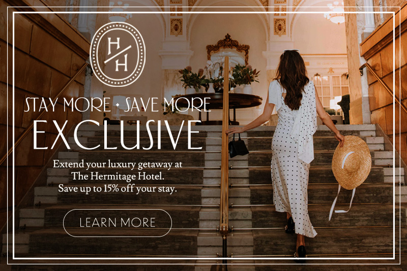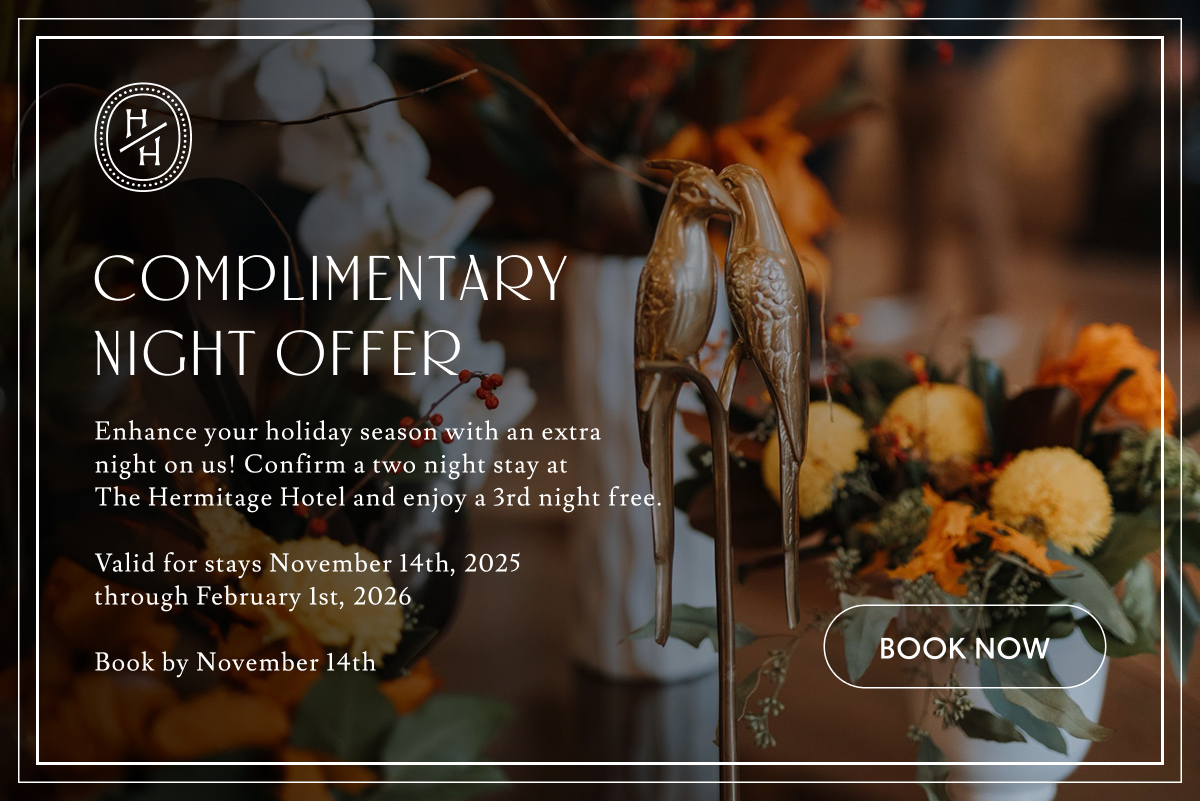 Since 1910, The Hermitage Hotel has served as Nashville’s premier gathering place for occasions of all kinds. Today, our versatile venues exude timeless style for both the modern bride and the modish event planner. With sophisticated yet soulful surroundings, detail-oriented staff, and a world-class culinary operation under the direction of Michelin-starred Chef Jean-Georges Vongerichten, we are ready to host your wedding, meeting, or event in refined style.